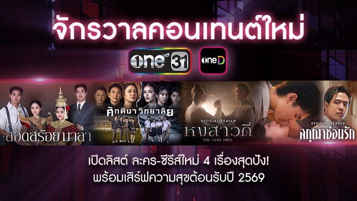 ต้อนรับปี 2569 อย่างยิ่งใหญ่ เมื่อ one31 เดินหน้าเปิดไลน์อัพคอนเทนต์ใหม่ในนาม “จักรวาลคอนเทนต์ one31” ขนทัพ ละครและซีรีส์คุณภาพ 4 เรื่องเด่น ที่พร้อมเสิร์ฟความสนุกหลากรส ครอบคลุมทุกอารมณ์ ส่งตรงถึงผู้ชมผ่านหน้าจอ ช่องวัน 31 และแพลตฟอร์มสตรีมมิ่ง oneD